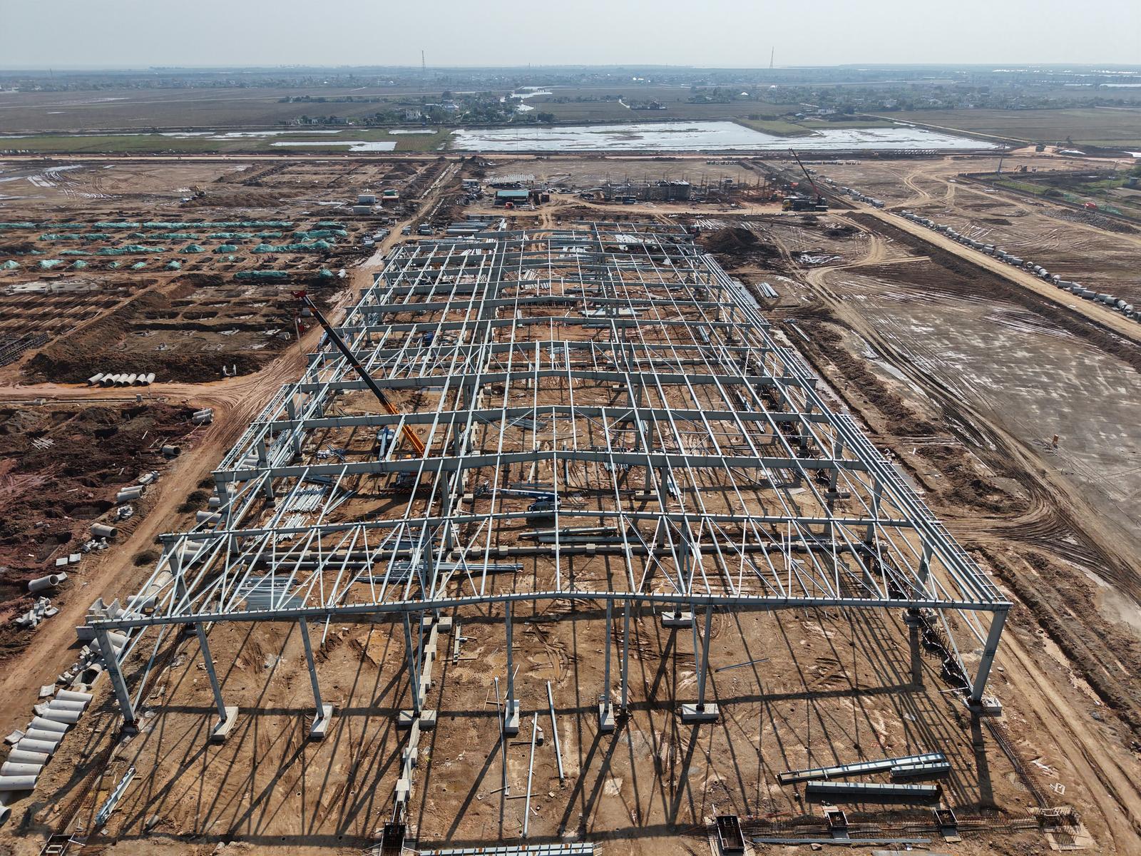 Phần khung thép của nhà xưởng đầu tiên dự kiến sẽ hoàn thành vào tháng 1 năm 2026